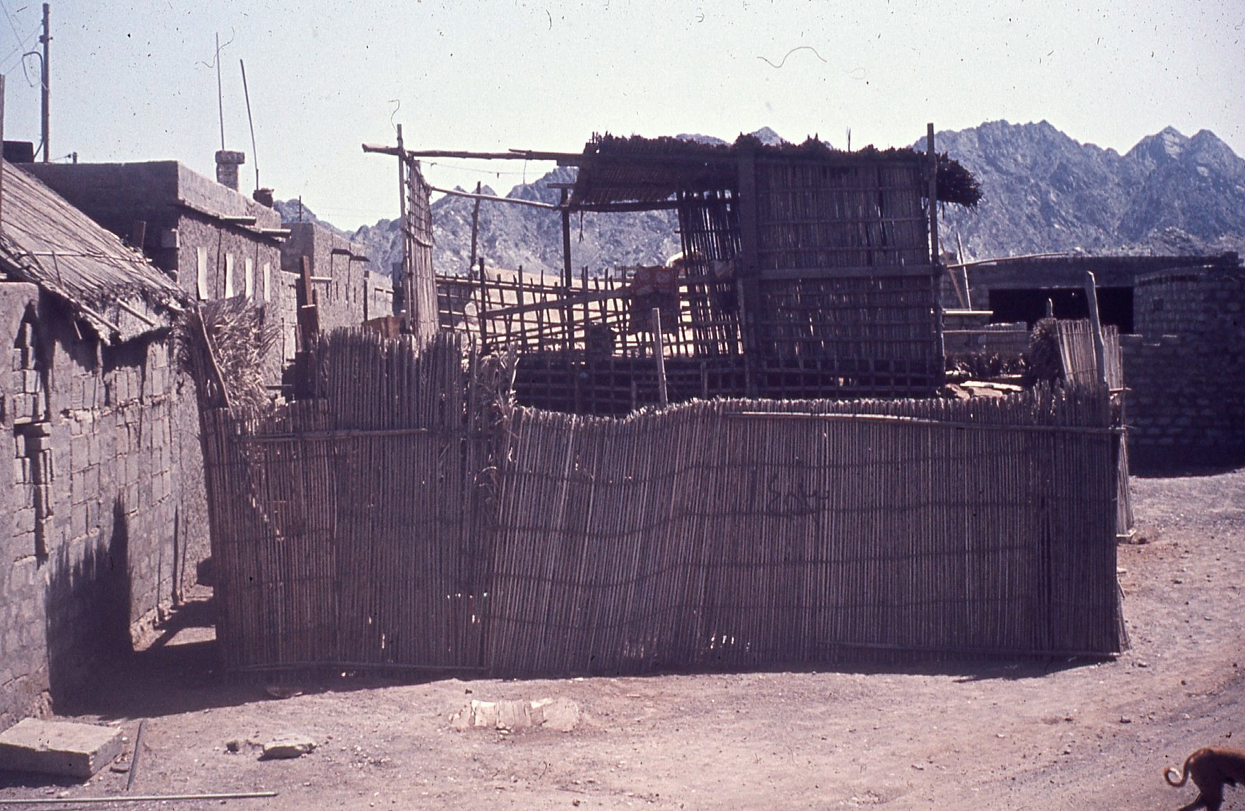 Fencing made of palm frond stems (barasti)