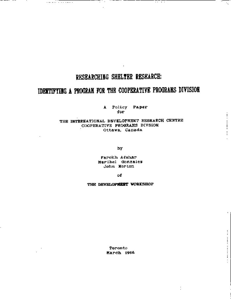 Researching Shelter Research: Identifying a Program for the Cooperative Programs Division